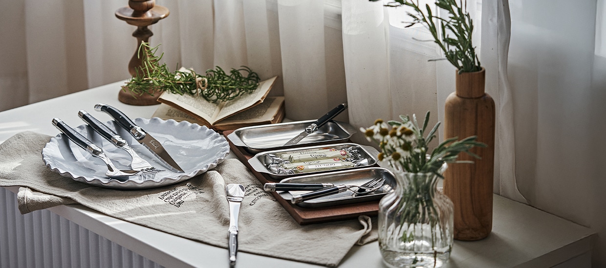 프랑스 양식기의 본고장 띠엘 지방에서 설립, 커트러리 장인들의 테크닉으로 생산되며,높은 내구성을 활용한 다양한 디자인과 컬러가 특징인 브랜드 입니다.